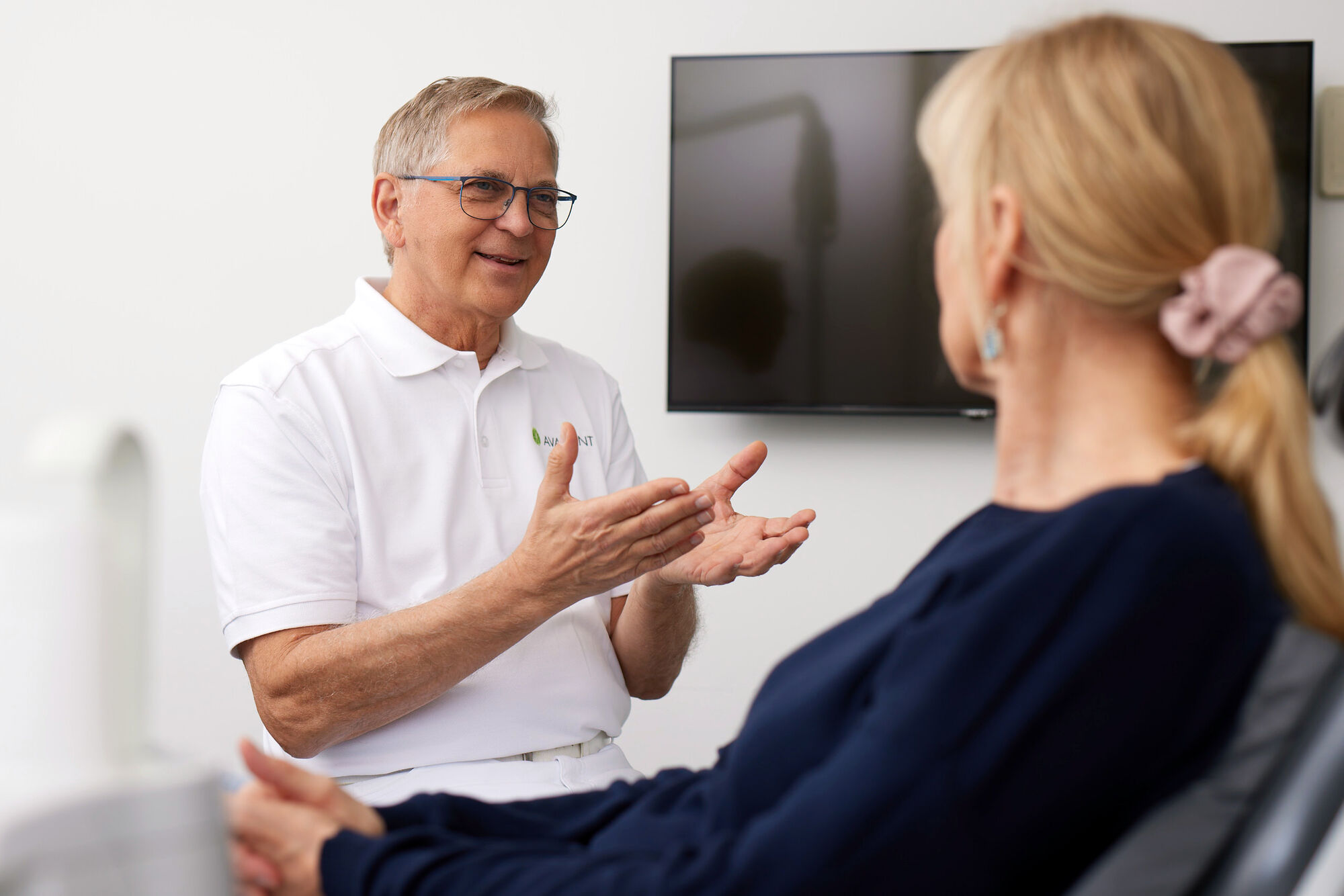 Um ein Zahnimplantat fest im Kiefer zu verankern, damit es dort über Jahre stabil hält, ist ein gutes Knochenangebot, also ausreichend Knochensubstanz, eine der wichtigsten Voraussetzungen. Nur in einen gesunden Knochen kann das Implantat ohne Komplikationen einheilen. Die Beschaffenheit des Kieferknochens prüfen Ihre Zahnärzte bei AVADENT daher sehr genau, wenn sie eine Implantation planen.